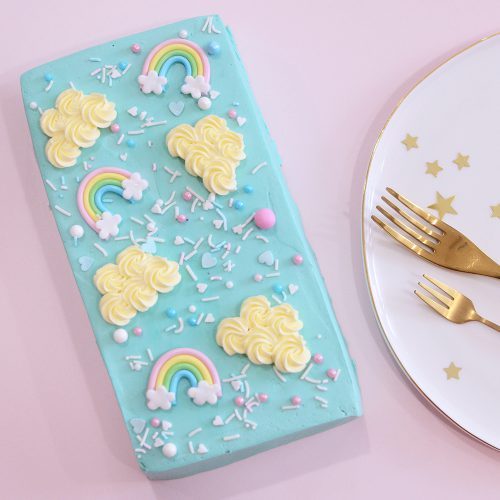 A symbol of understated elegance. The Floral Lemon sheet cake is a classic fragrant butter cake drizzled with lemon icing and decorated with edible flowers and herbs.